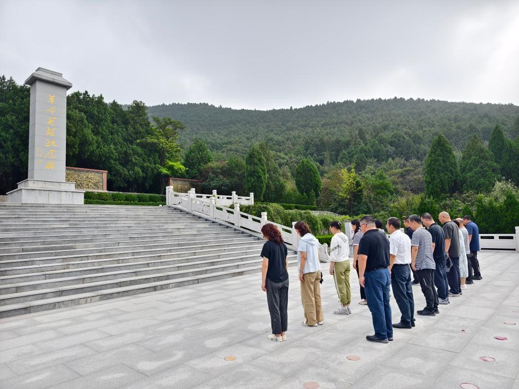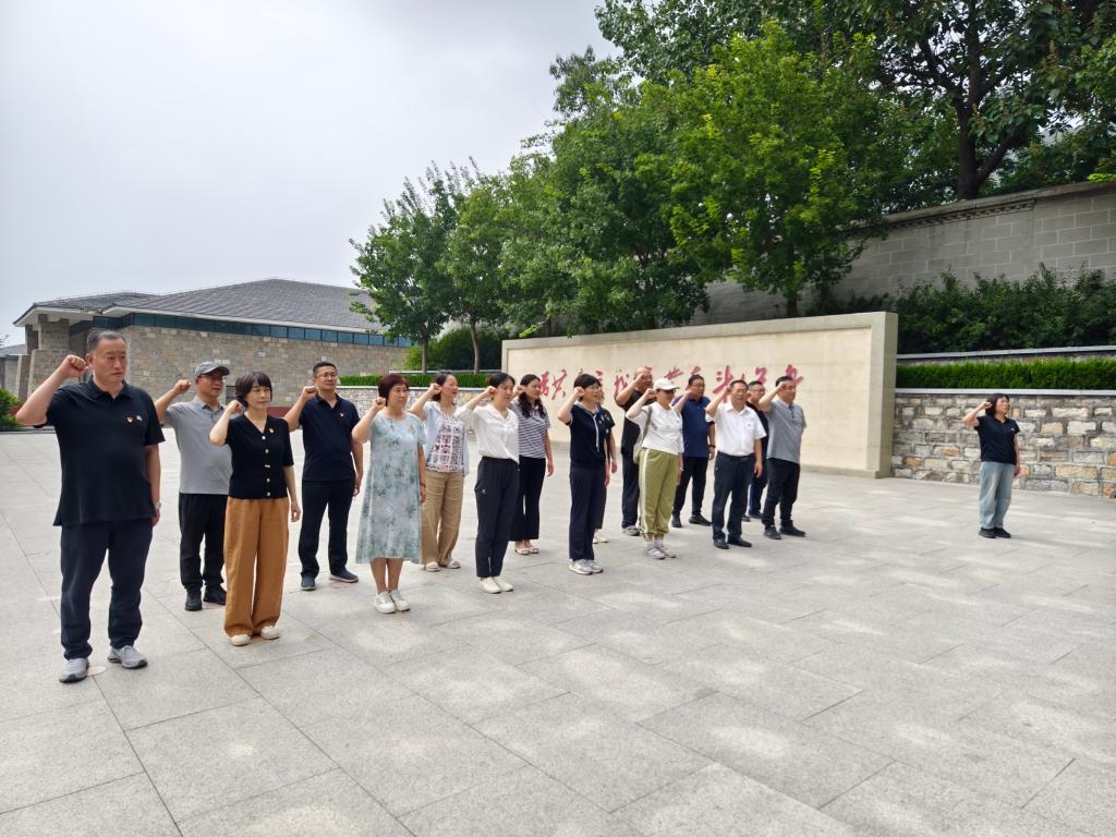 全体党员感怀往昔,在初心广场重温入党誓词,在烈士陵园的烈士纪念碑前缅怀先烈,默哀致敬。