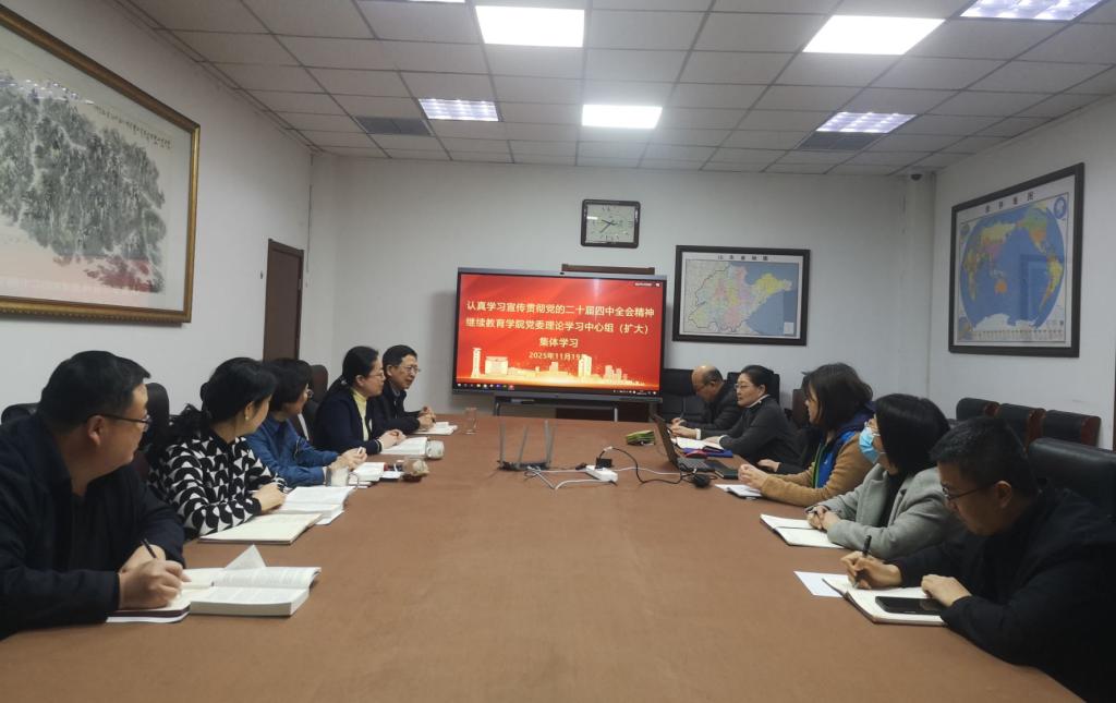 11月19日,继续教育学院党委理论学习中心组召开集中学习(扩大)会,专题学习党的二十届四中全会精神。学院党委书记李焱主持学习,学院党委理论学习中心组成员参加学习,教工党支部委员列席学习。会上,大家集体学习了四中全会公报全文。