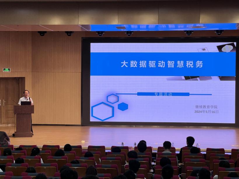 2024年5月16日下午,在圣井校区大学生活动中心报告厅,继续教育学院举办学术讲座,原国家税务总局山东省税务局二级巡视员李崇西以“大数据驱动智慧税务”为题做学术报告。继续教育学院副院长郝向华致辞,办公室主任王晓红主持,大数据分析卓越人才计划160余名师生聆听报告。