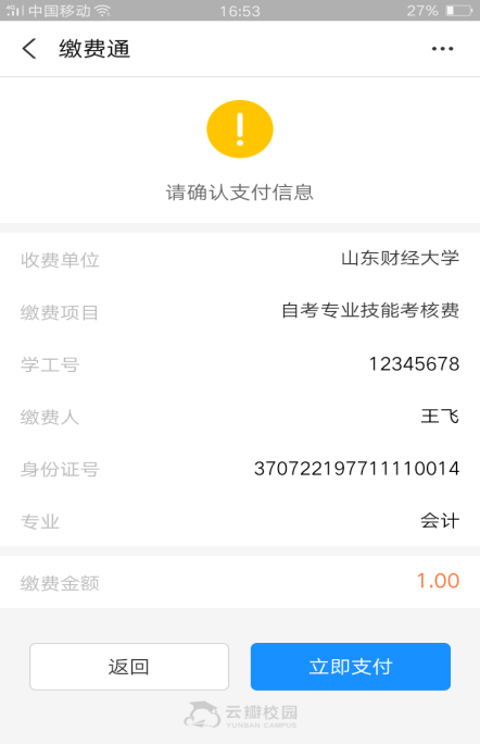 3.请确认支付的相关信息是否正确,信息无误后点击“立即支付”。