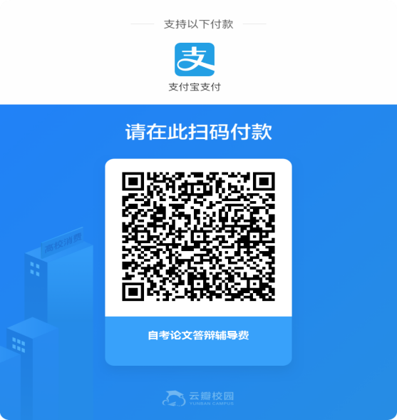 注:以下二维码是本次自考论文辅导答辩费缴费码,费用为260元,请各位考生通过扫码进行缴纳本次费用。