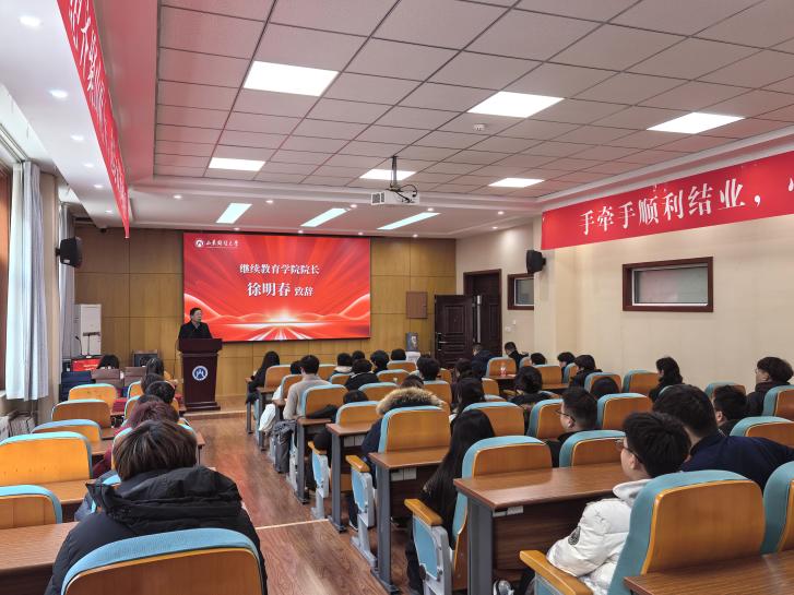 继续教育学院院长徐明春在致辞中总结了同学们在校期间的学习情况,对同学们在山财大完成学习任务,顺利结业,即将开启海外留学之旅表示祝贺,向为出国留学项目付出辛勤劳动的项目管理人员和任课老师表示衷心的感谢。徐明春院长还对即将出国留学的同学们提出了希望和要求:一是不忘初心,坚定信念,做强国建设的担当者;二是希望同学们勇于创新,做追求卓越的奋斗者;三是弘扬中国文化,讲好中国故事,传播中国声音,做中外文化交流的使者。