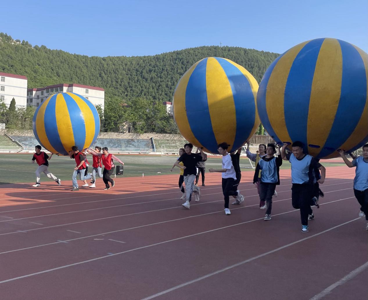 学院范瑞雪副书记致开幕辞,运动员代表与裁判员代表进行宣誓,2022级出国留学项目和2021级职业教育项目近百名学生参加了趣味比赛活动。在长达四个小时的活动中,同学们按团队分组参加了包括团队战鼓、不倒森林、摸石过河、运转乾坤、毛毛虫竞速和力拔山河等六项比赛。比赛中各团队同学齐心协力、勇往直前、战意高昂,展现了青年人应有的激情与担当。比赛场上精彩纷呈,加油声、喝彩声、掌声此起彼伏,处处洋溢着青春的活力,运动场变成了欢乐的海洋。范瑞雪副书记与辅导员、班主任为获得一、二、三等奖的团队一一颁奖,祝贺同学们取得的来之不易的成绩,鼓励同学们再接再厉、勇于拼搏、永不言弃。
