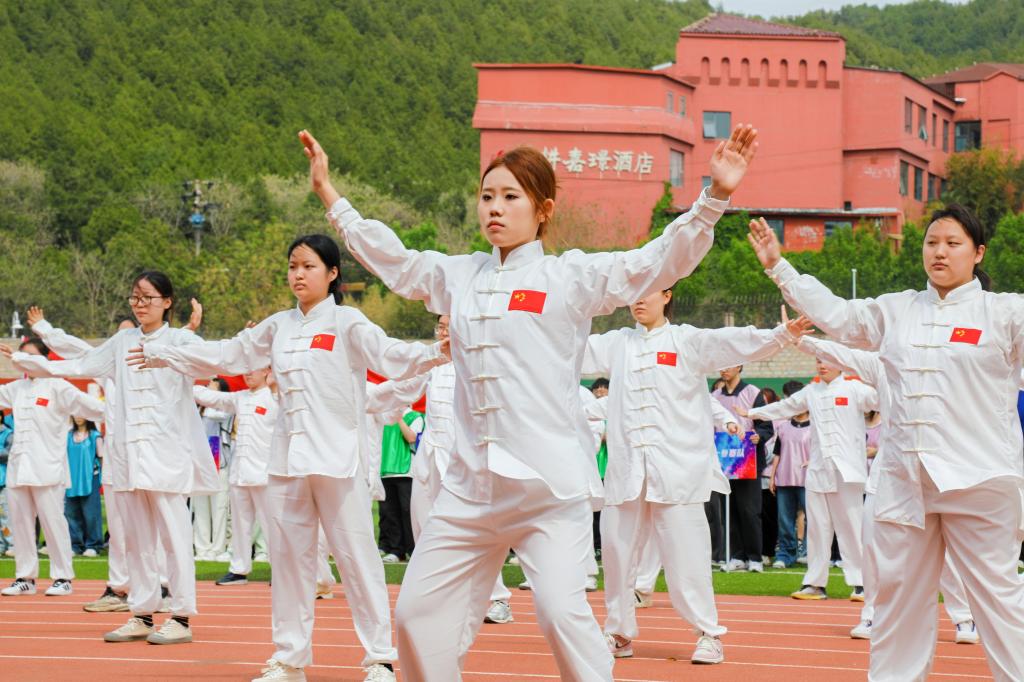 今年的开幕式特别增加了健身气功八段锦的汇报表演。为积极响应学校“以体育智、以体育心”的体育教育宗旨,学院从本学期开始为出国留学项目学生开设了八段锦、太极拳等特色体育课程。此次汇报表演由2024级2+2项目学生代表精彩呈现,他们身着飘逸的白色太极服,在悠扬舒缓的伴奏音乐中,动作行云流水、整齐划一、仿佛将一幅灵动的水墨山水画搬上舞台,充分展现了传统体育文化的独特魅力与学院体育教育的教学成果。