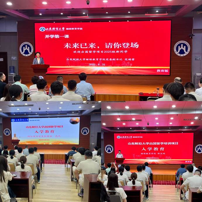 8月31日,新生报到后的第二天,继续教育学院组织2025级出国留学项目新生进行了入学教育,帮助他们尽快熟悉新环境,开启新生活。入学教育以上午集中学习、下午分别召开班会的形式展开。