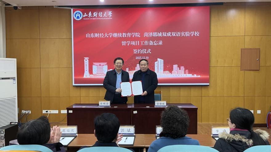 座谈会后,继续教育学院院长徐明春和菏泽郓城双成双语实验学校校长徐德雨在大家的见证下签署了留学项目工作备忘录。